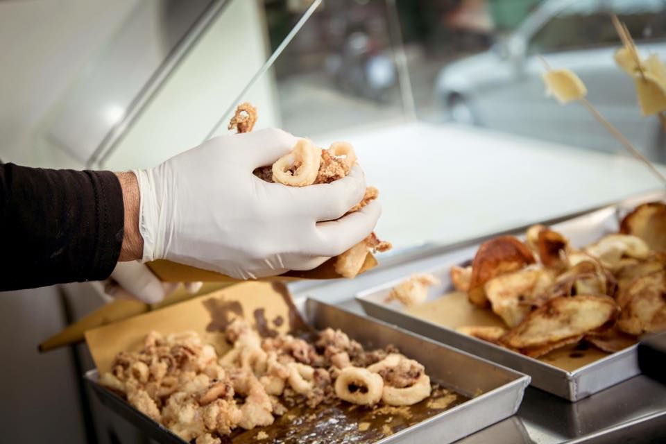 Cartoccio moscardini, cartoccio calamari, cartoccio alici, suppli cacio e pepe, carbonara e amatriciana, panino tonno affumicato